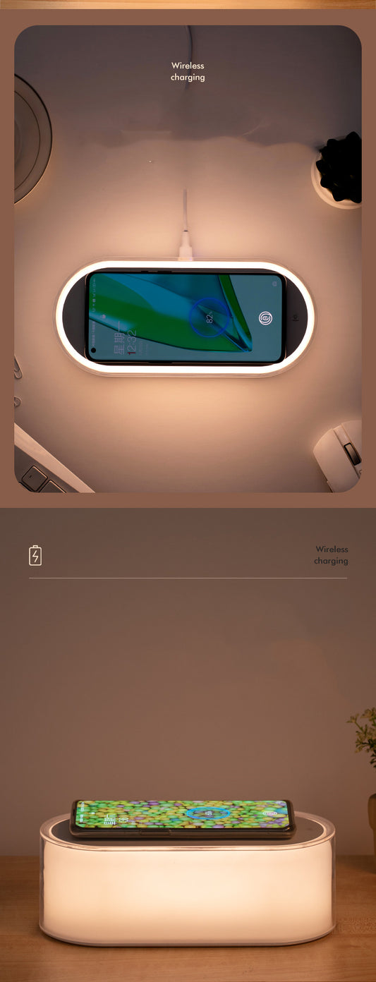 WLC-SL056-SM Bluetooth Speaker + FM + wireless charger + night lights + alarm clock