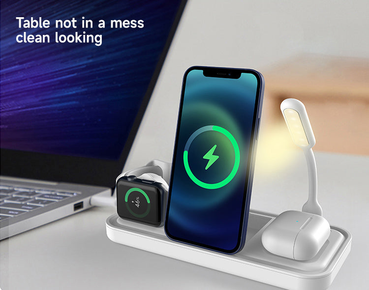 WLC-L020-AD 4-in-1 Foldable Wireless Charging Stand with LED Light & USB-A Fan